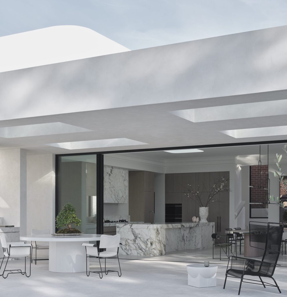The design prioritises a sense of openness and quiet luxury, with crisp, linear forms that contrast and complement the character of the original structure. The new addition is deliberate in its restraint—contemporary in its language yet sympathetic to the heritage core—resulting in a unified composition that celebrates both past and present.